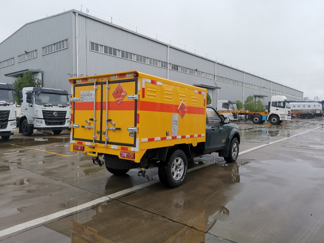 廂體頂部封閉,不可開啟;廂體可選裝無側(cè)門;選裝不同形式的側(cè)開門;車身側(cè)面及后部粘貼橙色反光標(biāo)識和爆炸品菱形標(biāo)示,在車體后部設(shè)置安全標(biāo)示;危險貨物運輸車輛的車輛類型EX/Ⅱ;用于運輸具有**包裝的黑火藥,壓縮黑火藥,硝胺炸藥,電引爆雷管,爆破炸藥,點燃導(dǎo)火索,專用煙火制品,類項號:1.1D,1.1D,1.1B,1.1D,1.4G,1.1 D,1.1G;該車安裝具有衛(wèi)星定位功能的行駛記錄儀;ABS型號:EV5010,EV5011;ABS生產(chǎn)廠:博世汽車部 件(蘇州)有限公司,博世汽車部件(蘇州)有限公司;發(fā)動機**大凈功率**kW;僅用子午線輪胎,裝備限速裝置,前置式排氣管,排氣制動;前輪采用盤式制動;油耗對應(yīng)關(guān)系:ZD25T6(7.7) |