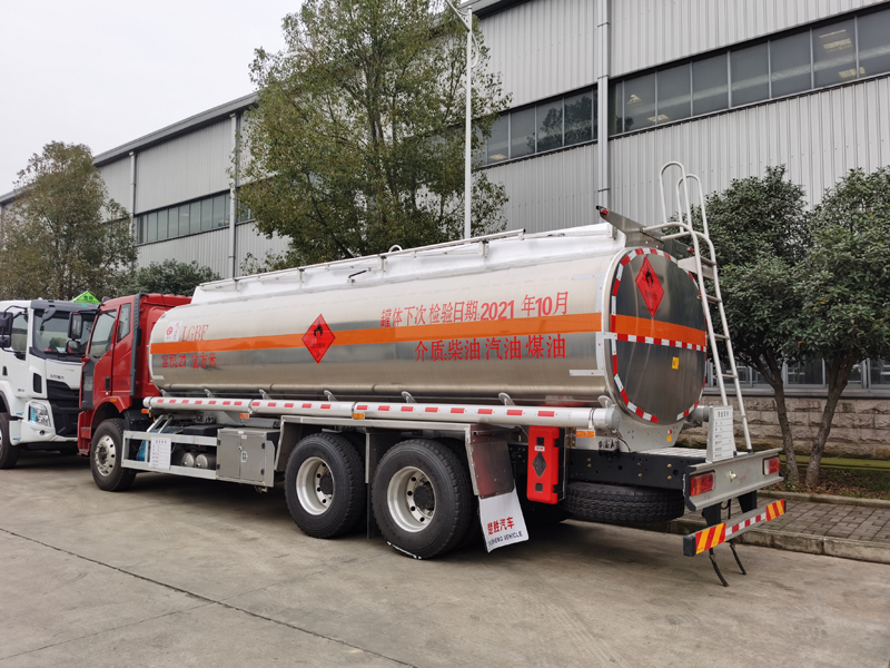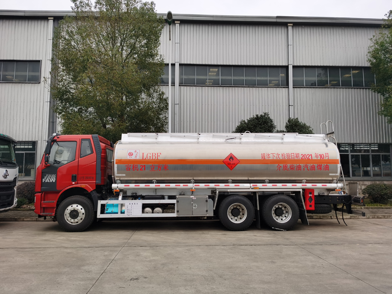 上裝配置:汽油、柴油、煤油介質:公告容積為21方,加油機安裝在工具箱內(nèi),罐體**容積為21.6方. 整車尺寸(mm):10110×2550×3490. 總質量26000 Kg,整車額定載質量:16670/16605 Kg,整備質量:9200Kg; 罐體尺寸:(長×長軸×短軸) (mm): 7200×2300×1600.罐體常配為單倉采用5182鎂鋁合金制作,罐體厚度大于等于5MM,帶山東齊魯油泵,泵箱配歐標拉手鎖,一個單呼吸閥的歐標罐口、一個海底閥,兩個自流閥,歐標一套(含歐標罐口,海底閥,油氣回收,防溢流探桿,下裝油口);C:可選裝大流量加油機(上海柏萊稅控加油機、三金稅控加油機、中升稅控加油機)帶15米自動回位卷盤,兩根罐體等長輸油管、兩個滅火器,一個防火帽,靜電卷盤、安全告示鐵牌、工具箱、全車歐式鎖、牌照燈、車尾拖車鉤開孔、其余標配。易燃液體貼“易燃”標,貼反光條、反光帶,罐體尾部反光板、安全告示。